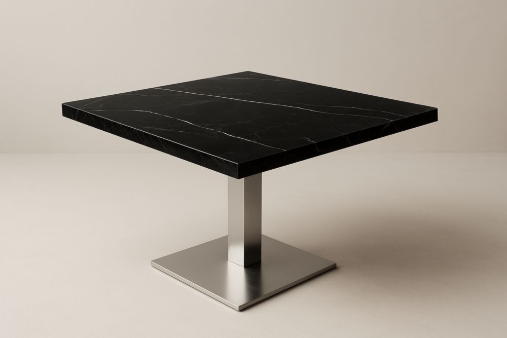 Tavolo quadrato in marmo nero e acciaio inox 80x80x75 cm