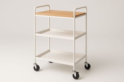 Carrello a tre ripiani in Acciaio con piano in legno massello