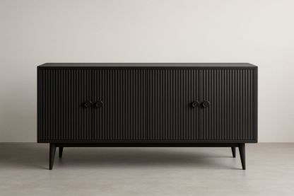 Credenza moderna in MDF nero con ante a venatura verticale