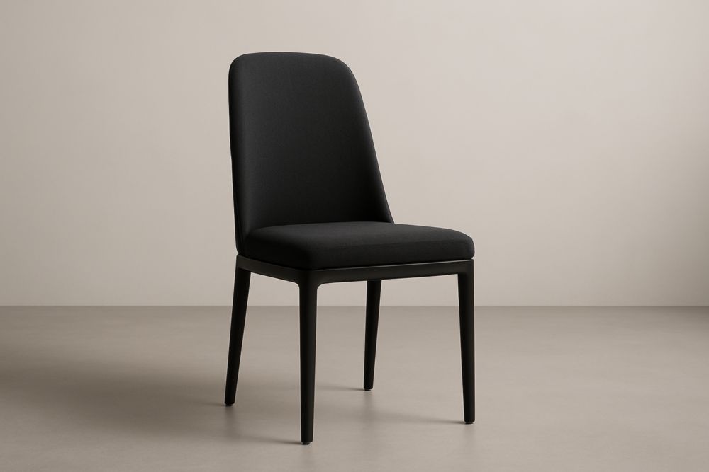 Sedia da Pranzo in Tessuto Nero con Struttura in Legno Massello