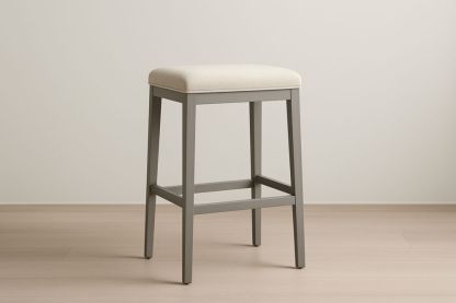 Sgabello da Bar in Metallo Grigio con Cuscino in Tessuto Bianco